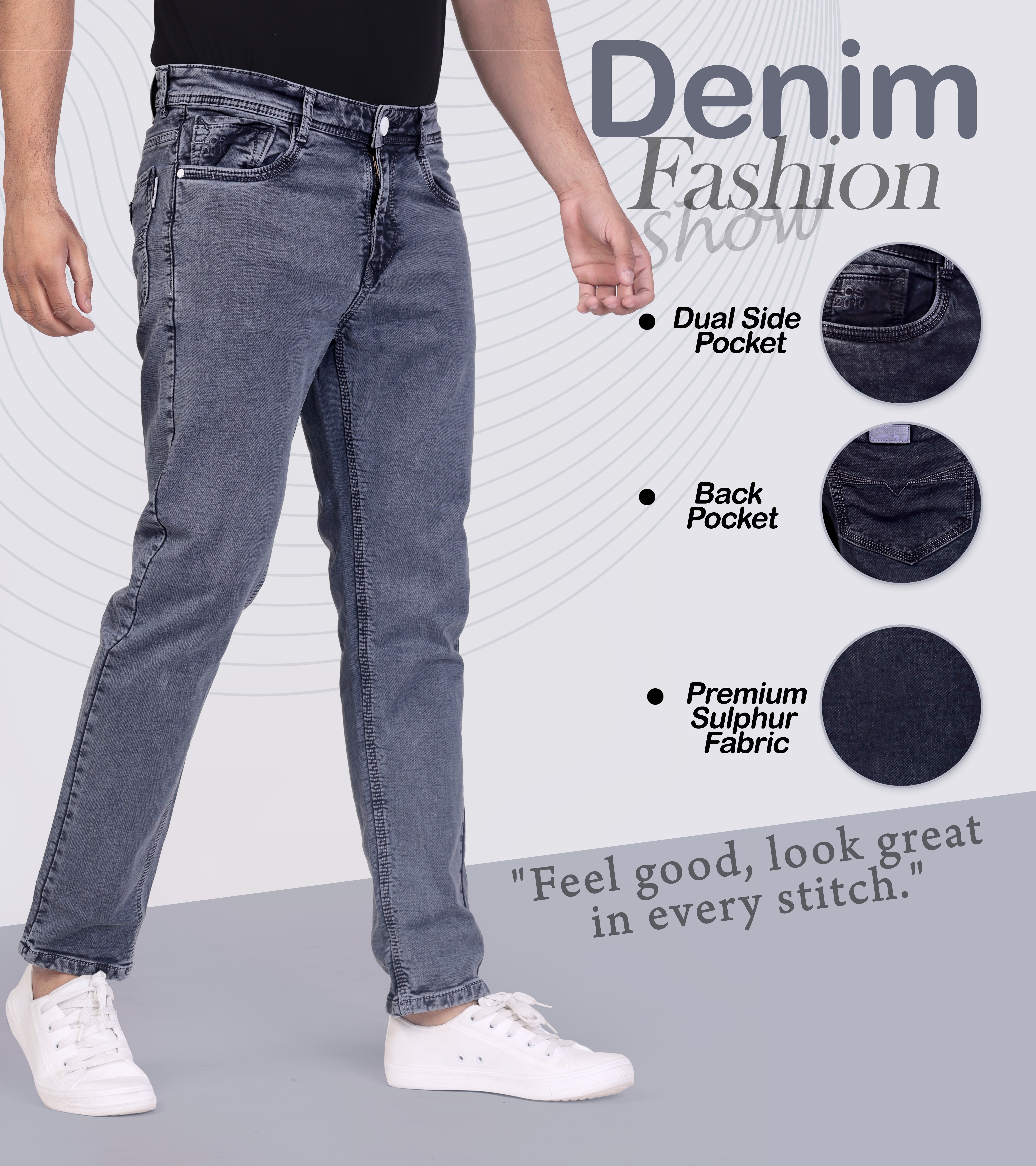 Elevate your everyday style with the Steel grey Sulphur twill jeans for men ,Design No. A-55 , designed for comfort and versatility. Crafted from premium, durable denim, these jeans feature a modern fit that flatters all body types. The unique Sulphur wash gives them a distinctive, lived-in look, making them perfect for any casual occasion.